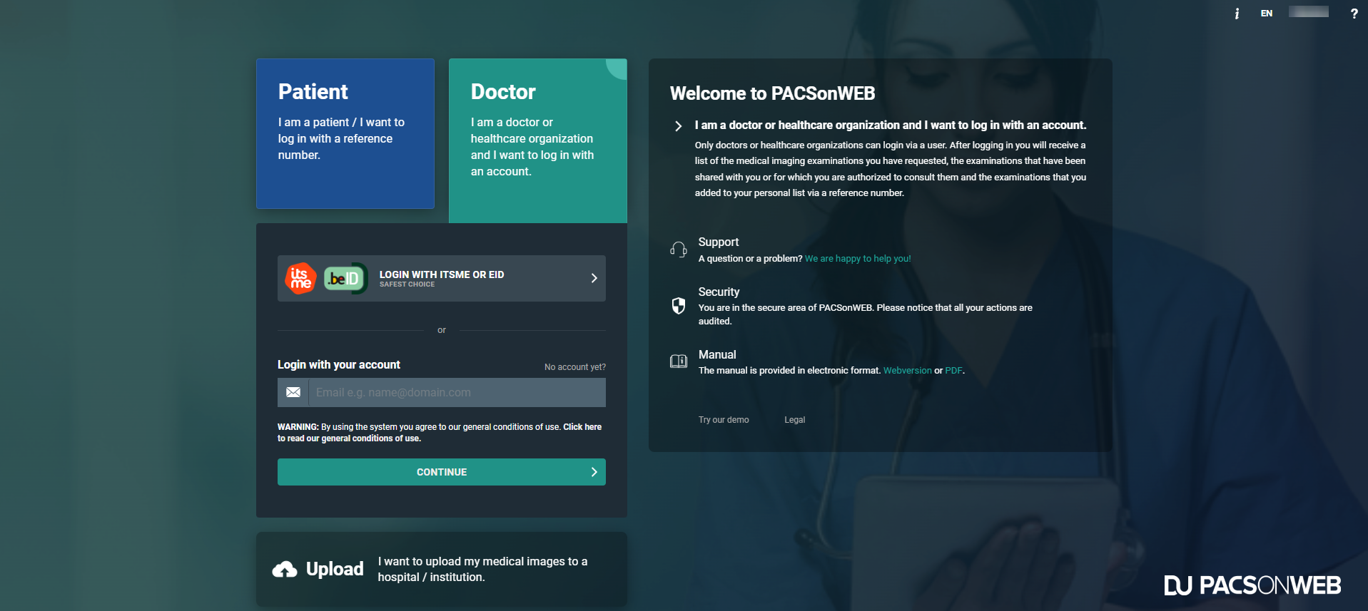 Log in as a doctor