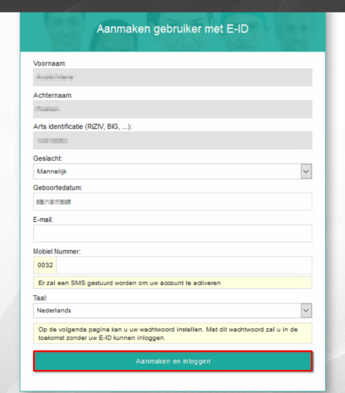 a. Complete the form and click Create and log in ('Aanmaken en inloggen').