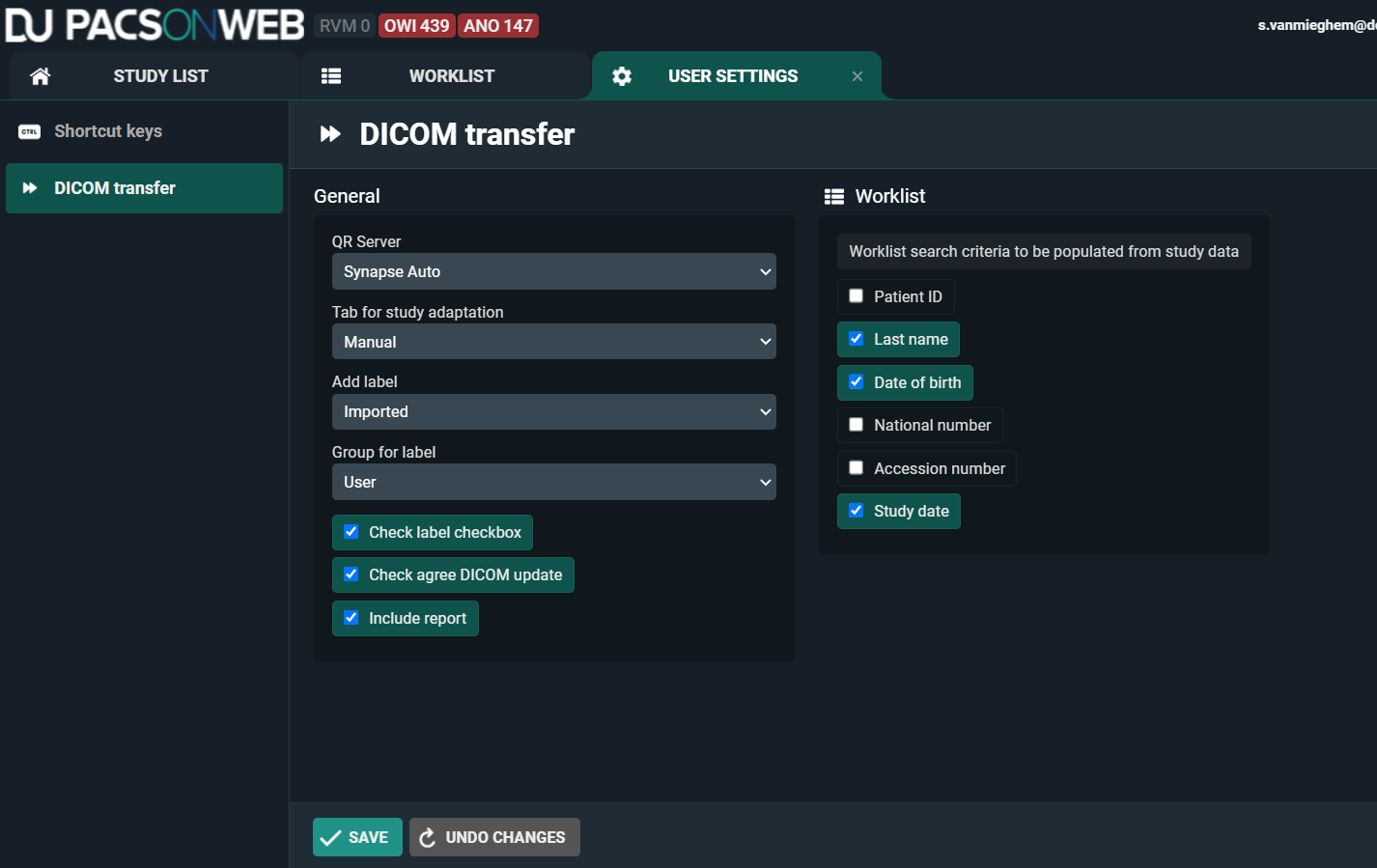 There are 2 ways of accessing the configuration of the personal DICOM Transfer settings.
